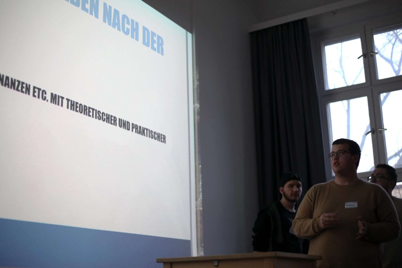 „Die Schule von Morgen“ ist eine Schule wie wir sie uns wünschen. In dieser würden wir gerne Workshops und Kurse wie von Baut Eure Zukunft anbieten, um in Sachen Haushalt, Finanzen und Persönlichkeitsentwicklung praktische Erfahrungen zu sammeln. Zudem wünschen wir uns neue Schulfächer, wie Medien und Informatik, da in unserem digitalen Zeitalter essenziell ist, dass wir mit der Zeit gehen und nicht im Jahr 2030 leben, aber den Unterricht von 1950 lernen. Zur Berufsfindung würden wir gerne mittels Praktika und Besuchen von Universitäten die Ausbildungsorte und Inhalte kennenlernen. Das soll jeden selbst Inspiration geben, um herauszufinden, was einen wirklich interessiert. Zudem soll unter der Überschrift „Persönlichkeitsentwicklung“ mittels Expert*innen, psychologischer Unterstützung und Mentor*innen die Selbstständigkeit der einzelnen Schüler*innen gefördert werden. Bestenfalls bekommt jede*r Schüler*in einen eigenen Mentor*in der ihm zuhört und hilft Ideen zu entwickeln. Unser letzter Punkt sind nachhaltige und visionäre Projektwochen und AGs zu zeitgemäßen Themengebieten wie Umwelt und Digitalisierung.