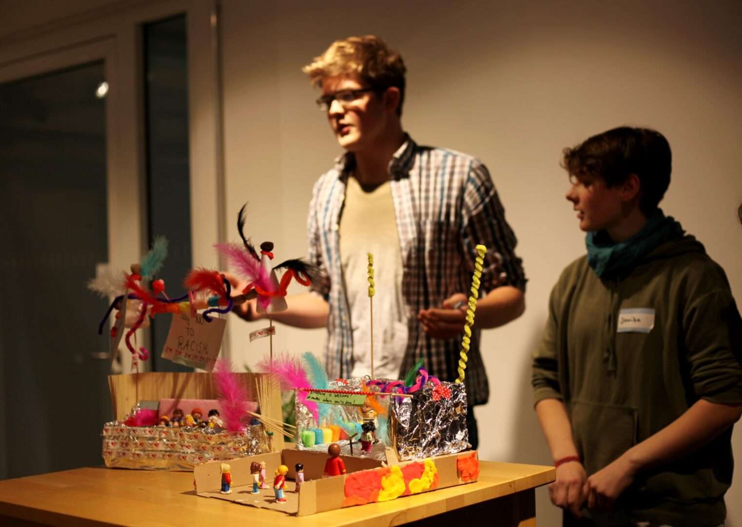 Wir haben uns die Lösung „Festival of Humanity“ ausgedacht. Wir haben gemerkt, dass viele Leute Vorurteile haben weil sie einfach unwissend sind und haben uns gedacht, dass sie bei unserem Festival viel dazulernen können. Bei unserem Festival können wir Leute aus aller Welt einladen und Menschen aller Hautfarben können sich austauschen ohne verurteilt zu werden. Darum wird es ganz viel verschiedene Musik geben, Comedians sollen alles von der lustigen Seite betrachten, jede Nationalität kann etwas von ihrer Tradition mitbringen und natürlich gibt es auch Essen. Wir hoffen, dass durch dieses Festival die Vorurteile aufgehoben werden.