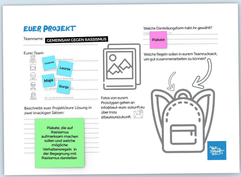 Mit unserem Projekt „Gemeinsam gegen Rassismus – Rassismus ist keine Meinung!“ möchten wir Schüler:innen für das Thema Rassismus weiter sensibilisieren. Ziel ist es, mit Schüler:innen Verhaltensregeln bzw. Empfehlungen für ein anti-rassistisches Miteinander zu teilen. Kurze prägnante Sätze wie zum Beispiel „Nicht wegschauen, sondern einschreiten“ oder „Keine Witze auf Kosten von Minderheiten“ sollen auf Plakate geschrieben werden, den Schüler:innen ins Auge stechen und zum Nachdenken anregen. Diese Plakate sollen schulweit aufgehangen werden.