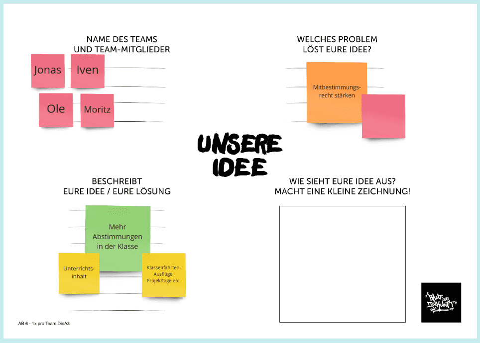 Wir möchten das Mitbestimmungsrecht der Schüler:innen an unserer Schule stärken. Dazu möchten wir alle Schülerinnen und Schüler die Gestaltung verschiedener Bereiche des Schulalltags einbinden. Zum Beispiel könnte das Angebot der Mensa stärker mit den Schüler:innen abgestimmt werden. Wir wünschen uns auch die Möglichkeit, die Themenschwerpunkte des Unterrichts mitbestimmen zu dürfen.