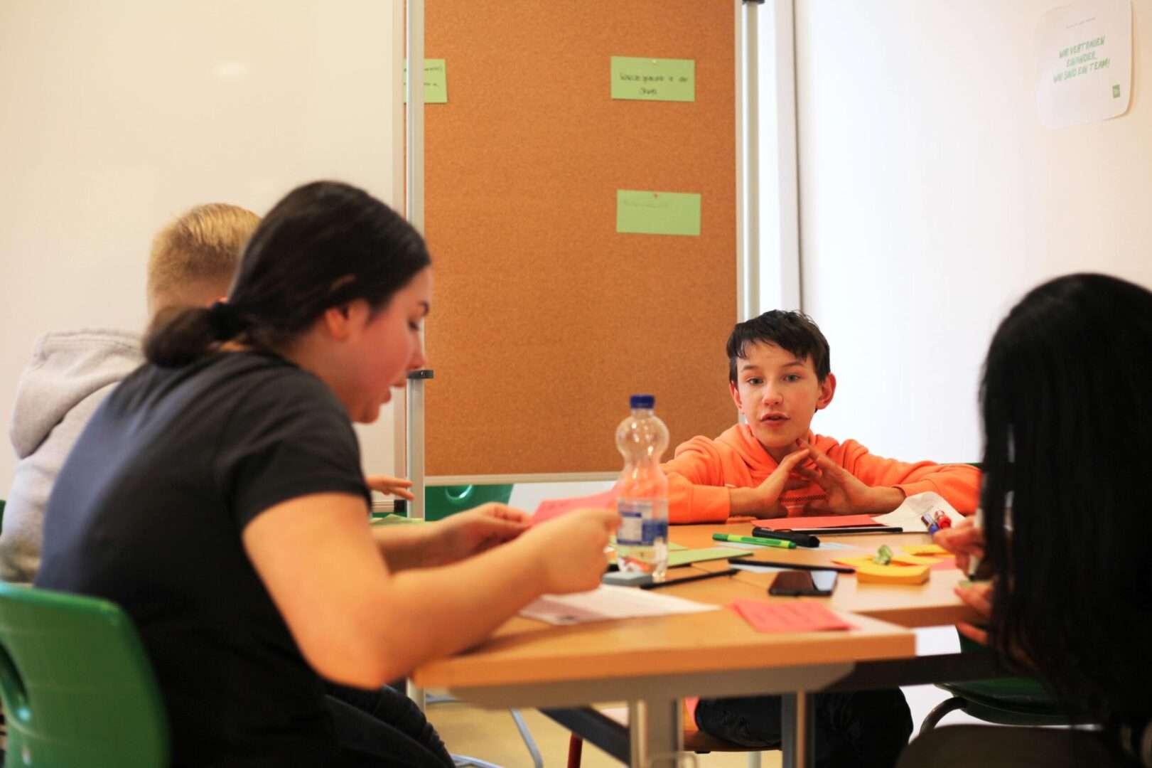 - Wir haben außerdem ein System für Bus und Bahn entwickelt bei dem man für Pfandflaschen oder Müll z. B. Fahrtickets bekommt. Das ist nachhaltig und hat einen ökologischen Hintergrund. Durch das Pfandflaschen-Ticket-System werden mehr Leute angeregt die Flaschen abzugeben, statt sie wegzuschmeißen. Wenn zum Beispiel ein Ticket 1,40 Euro kostet, man aber nur einen Euro hat, könnte man zwei Flaschen abgeben und damit aufstocken zum vollen Ticket.