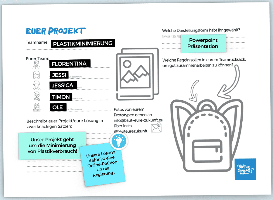 Mit unserem Projekt „Plastikminimierung“ möchten wir den Klimaschutz fördern, indem wir uns für eine Plastiksteuer für Supermärkte starkmachen. Im Jahr 2016 hat jede Person in Deutschland durchschnittlich 28 kg/Jahr an Plastikmüll verursacht. Allgemein steigt die Plastikproduktion exponentiell an. Unseres Erachtens gibt es besonders viel Plastik in Supermärkten, wodurch wir dort einen besonders großen Handlungsbedarf sehen. Wir möchten eine Online-Petition starten, damit Supermärkte zukünftig für Einwegverpackungen eine Plastiksteuer pro Gramm bezahlen müssen.