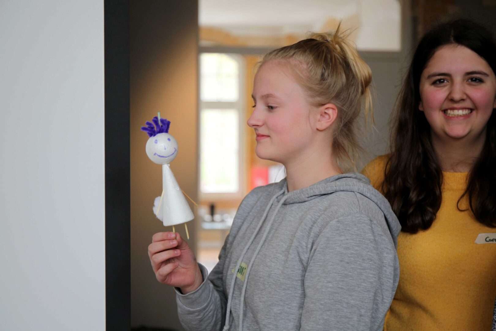 Unsere Idee ist eine Puppe, mit der man sprechen kann. Wenn man nach Hause kommt, ist da jemand der sich an alles erinnert. Die Puppe (Professor Pupsi) weiß alles über das Wetter, die anstehenden Hausaufgaben, welche Termine heute noch anstehen, welche Hobbys. Außerdem kann er Musik für die Motivation spielen.