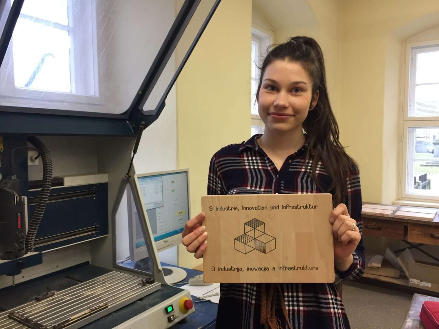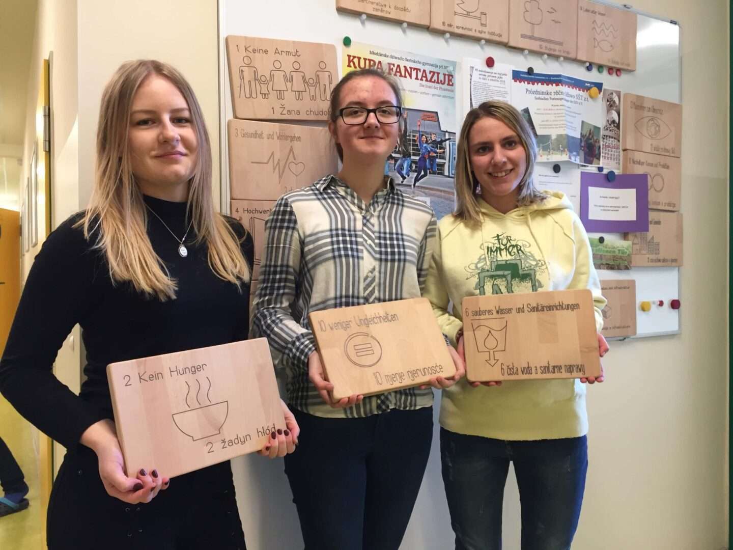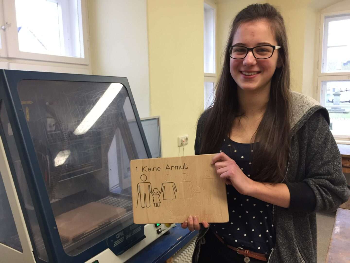 In der Klasse 10 wurden Inhalte der AGENDA 2030 in mehreren Unterrichtsfächern behandelt. So entstand die Idee, die Symbole min hölzernen Tafeln zu fertigen. Dieses Projekt wurde im Informatikunterricht verwirklicht.