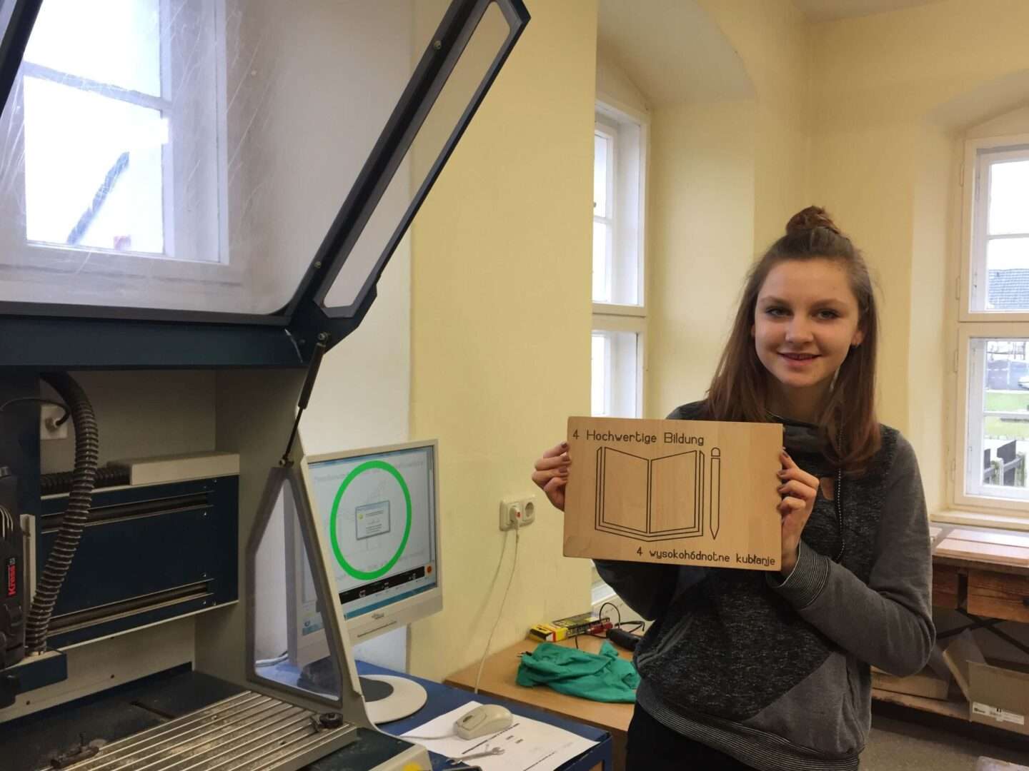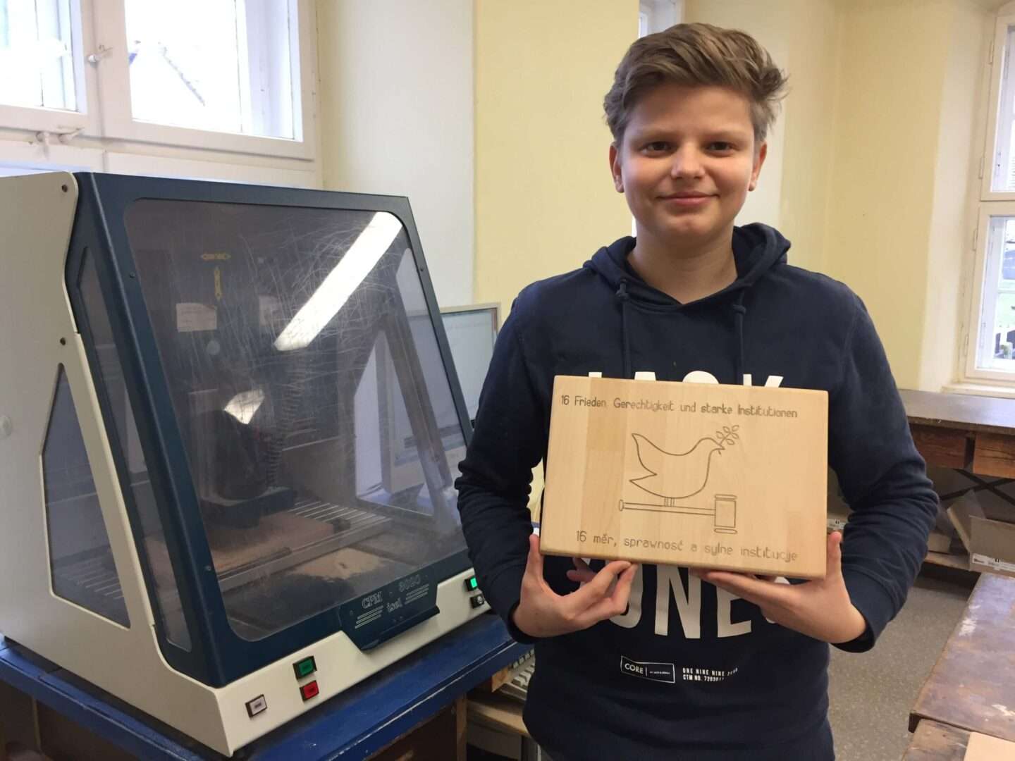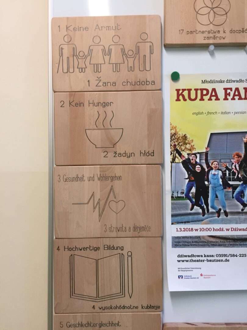 In der Klasse 10 wurden Inhalte der AGENDA 2030 in mehreren Unterrichtsfächern behandelt. So entstand die Idee, die Symbole min hölzernen Tafeln zu fertigen. Dieses Projekt wurde im Informatikunterricht verwirklicht.