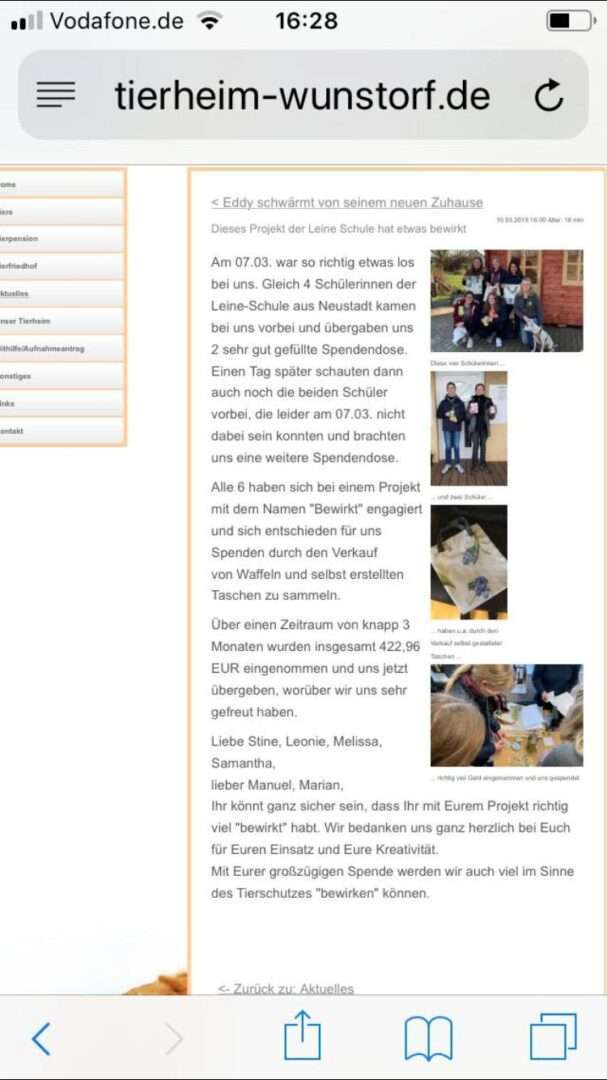Wir haben selbst genähte Taschen und gebackene Waffeln verkauft und haben somit 422,96€ innerhalb von etwa 3 Monaten gesammelt.