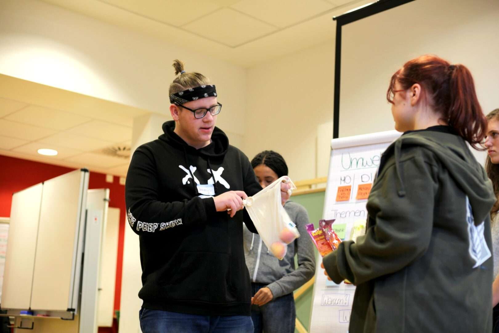 Eine mögliche Aktion wäre z. B. gemeinsam Müll sammeln zu gehen, um aktiv etwas für den Umweltschutz zu tun. Aber auch nachhaltiges Einkaufen kann man lernen. Danach könnte man mit diesen Lebensmitteln etwas Leckeres herstellen, das Ergebnis verkaufen und vielleicht sogar Spenden generieren.