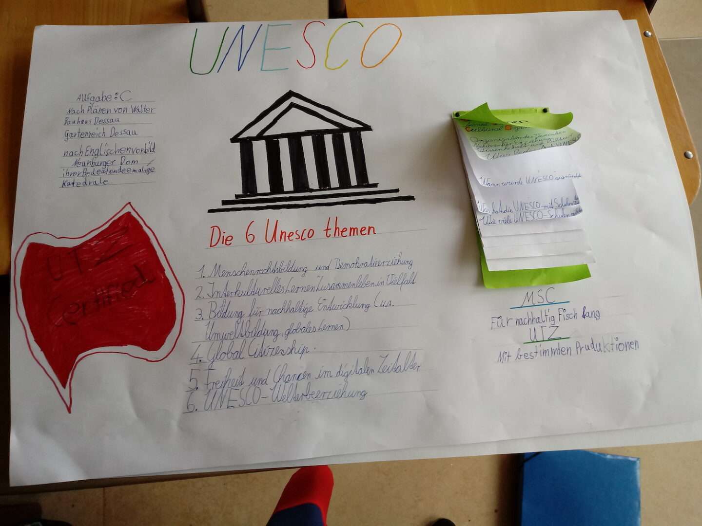 Wir haben in unserem Projekt versucht Materialien herzustellen, mit denen wir unseren Eltern, neuen Schülerinnen und Schülern und weitern interessierten Menschen zeigen können, was die UNESCO macht und wie wir die Ideen von Nachhaltigkeit im Alltag umsetzen können.