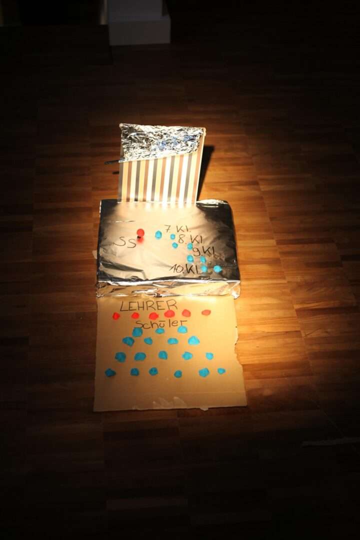 Wir Schüler*innen wünschen uns mehr Demokratie, darum haben die Schulbühne als Prototyp gebaut – als Symbol für Meinungsfreiheit und Mitbestimmung aller. Wir wollen, dass die Schüler*innen ihre Wünsche in der Klassenleiterstunde einreichen und der Klassensprecher die Klasse bei der Schulkonferenz vertritt. Alle Schüler*innen, Lehrer*innen und die Schulleitung sind bei der Konferenz dabei.